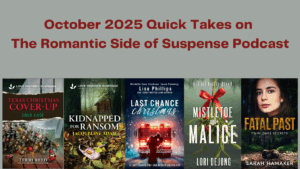 During this episode of “The Romantic Side of Suspense” podcast, you’ll hear from five authors about their romantic suspense books available this month. Here’s the list of authors and books for October 2025, with the book’s release date if not available now.